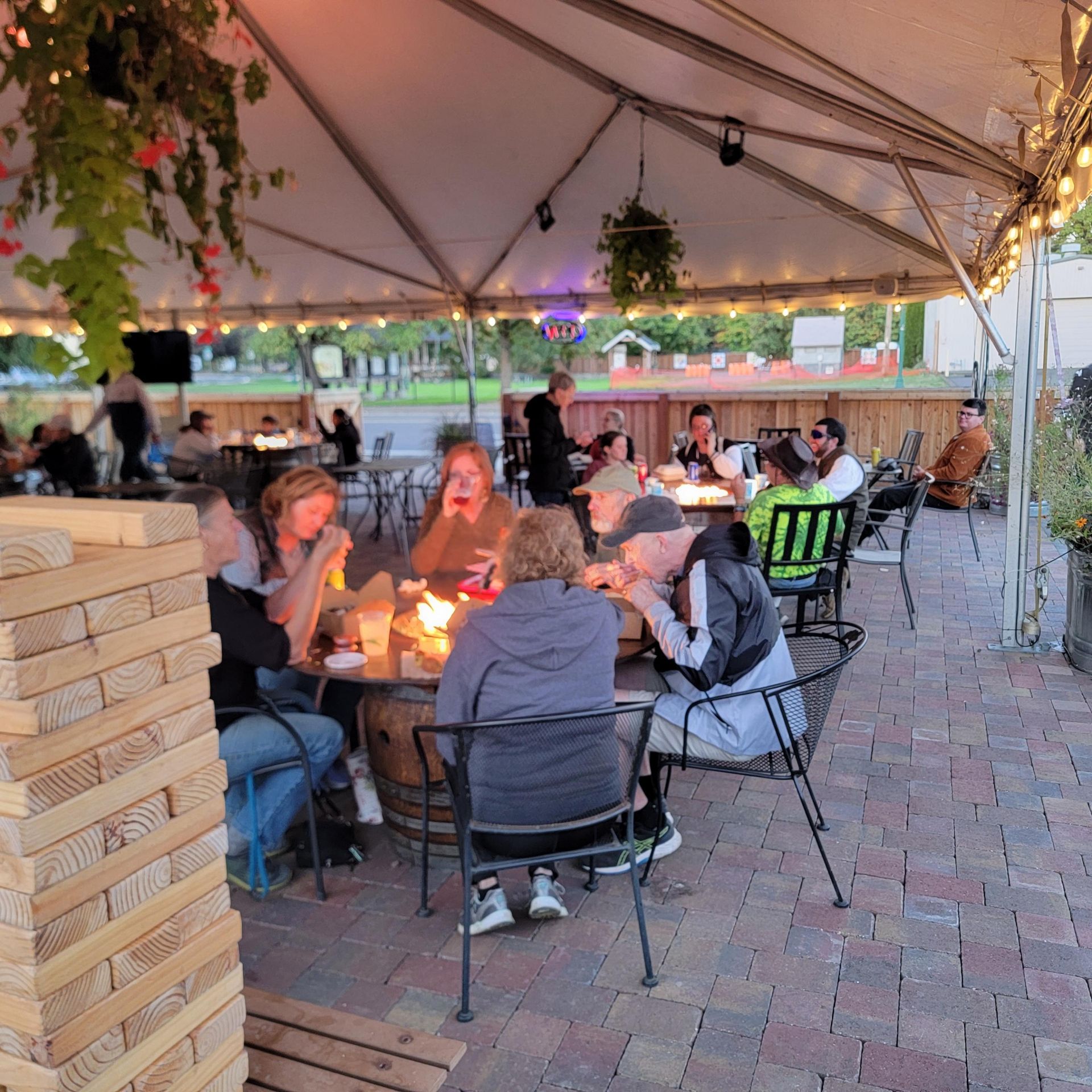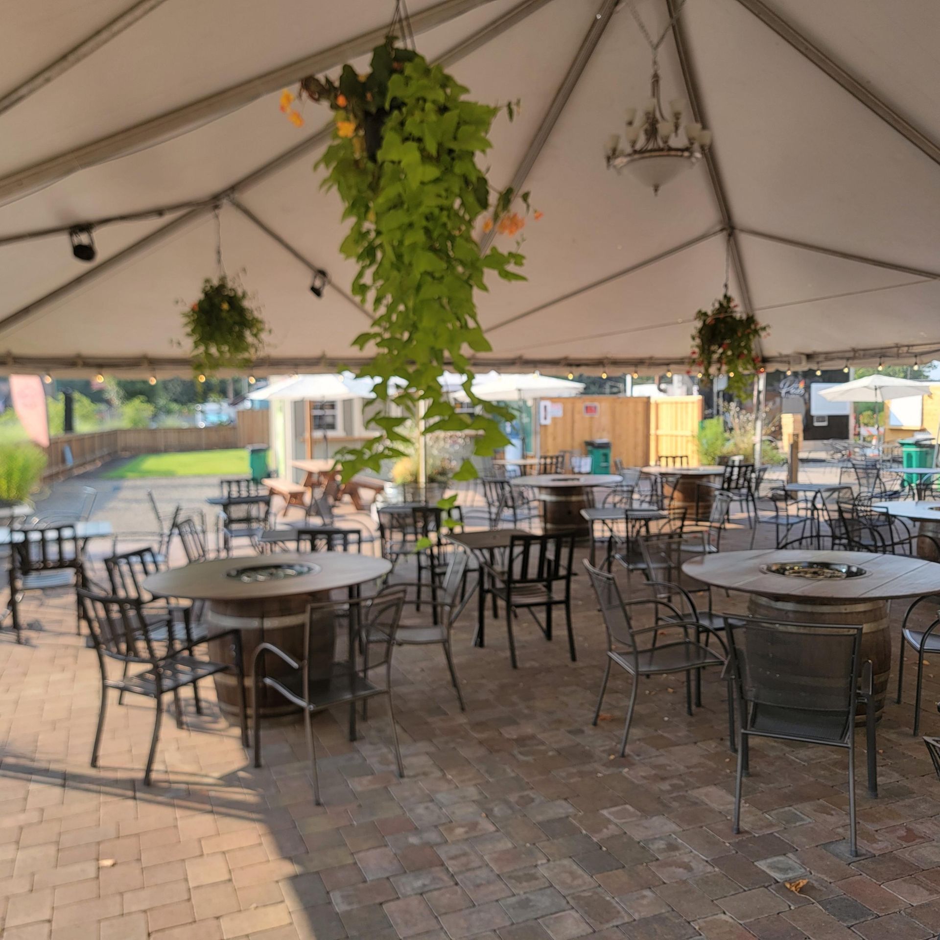 The Coburg Greenhouse is “a work in progress”. Our plan is to eventually have a full service bar and a greenhouse structure for parties and events. Initially we will be hosting 3 food trucks / trailers, and a tent for indoor / outdoor dining throughout the year. The beer shed features a selection of beers, ciders, and hard sodas on tap and in bottles.