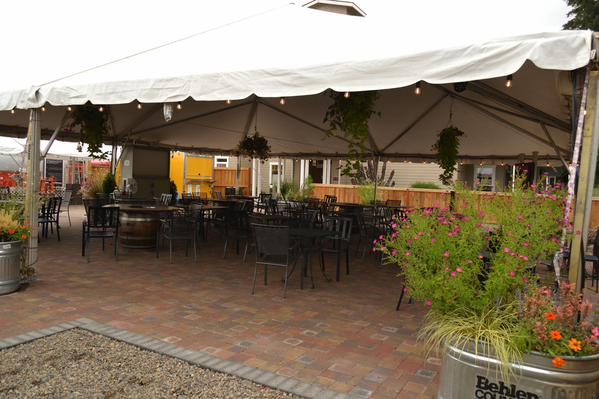 The Coburg Greenhouse is “a work in progress”. Our plan is to eventually have a full service bar and a greenhouse structure for parties and events. Initially we will be hosting 3 food trucks / trailers, and a tent for indoor / outdoor dining throughout the year. The beer shed features a selection of beers, ciders, and hard sodas on tap and in bottles.